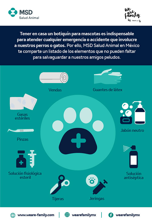 “Contar con un botiquín de primeros auxilios para mascotas debe ser indispensable. Armarlo es muy sencillo y puede ser de gran ayuda en una situación de emergencia. A la par, es importante tener siempre presente que nuestros perros y gatos deben contar con todas sus vacunas y que estén al día con su esquema de desparasitación externa, ya que todo suma para garantizar su buena salud y bienestar integral”, concluyó el integrante de MSD Salud Animal en México.
