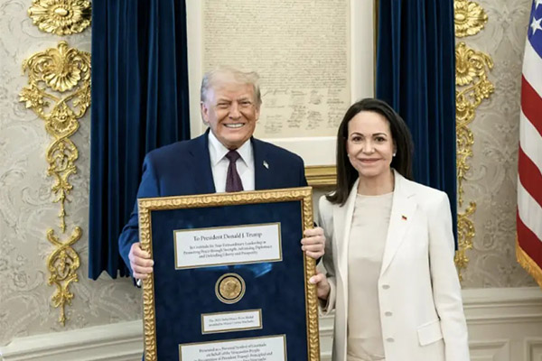 Por lo anterior, Machado regaló a Trump la medalla de su propio Premio Nobel de la Paz. Se la otorgó en un marco dorado con un mensaje de “gratitud por su extraordinario liderazgo para promover la paz” y en agradecimiento del pueblo venezolano por sus acciones para encaminar “su libertad”, según imágenes tras la reunión en la Casa Blanca.